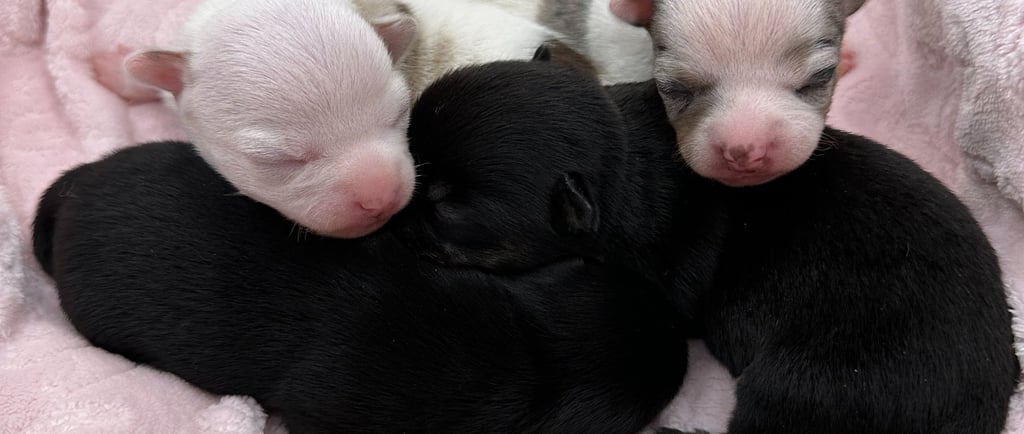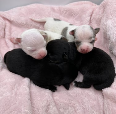 Brindle and merle babies here at one week. Doing great nursing well, gaining weight and thriving!
